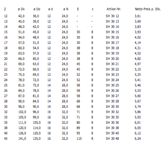 Z = Zähnezahl